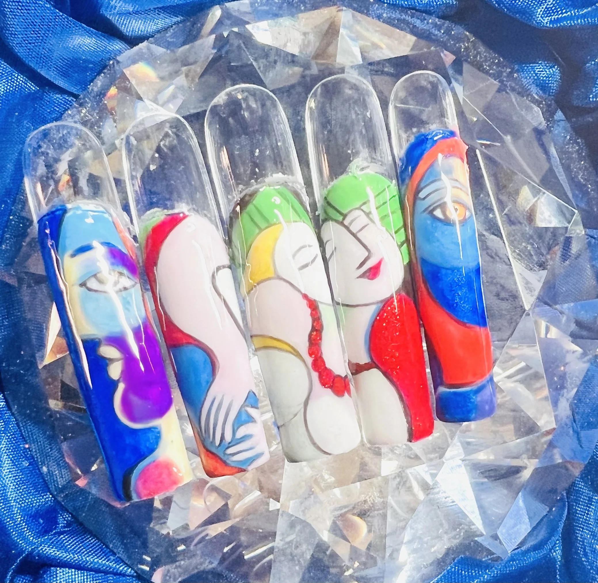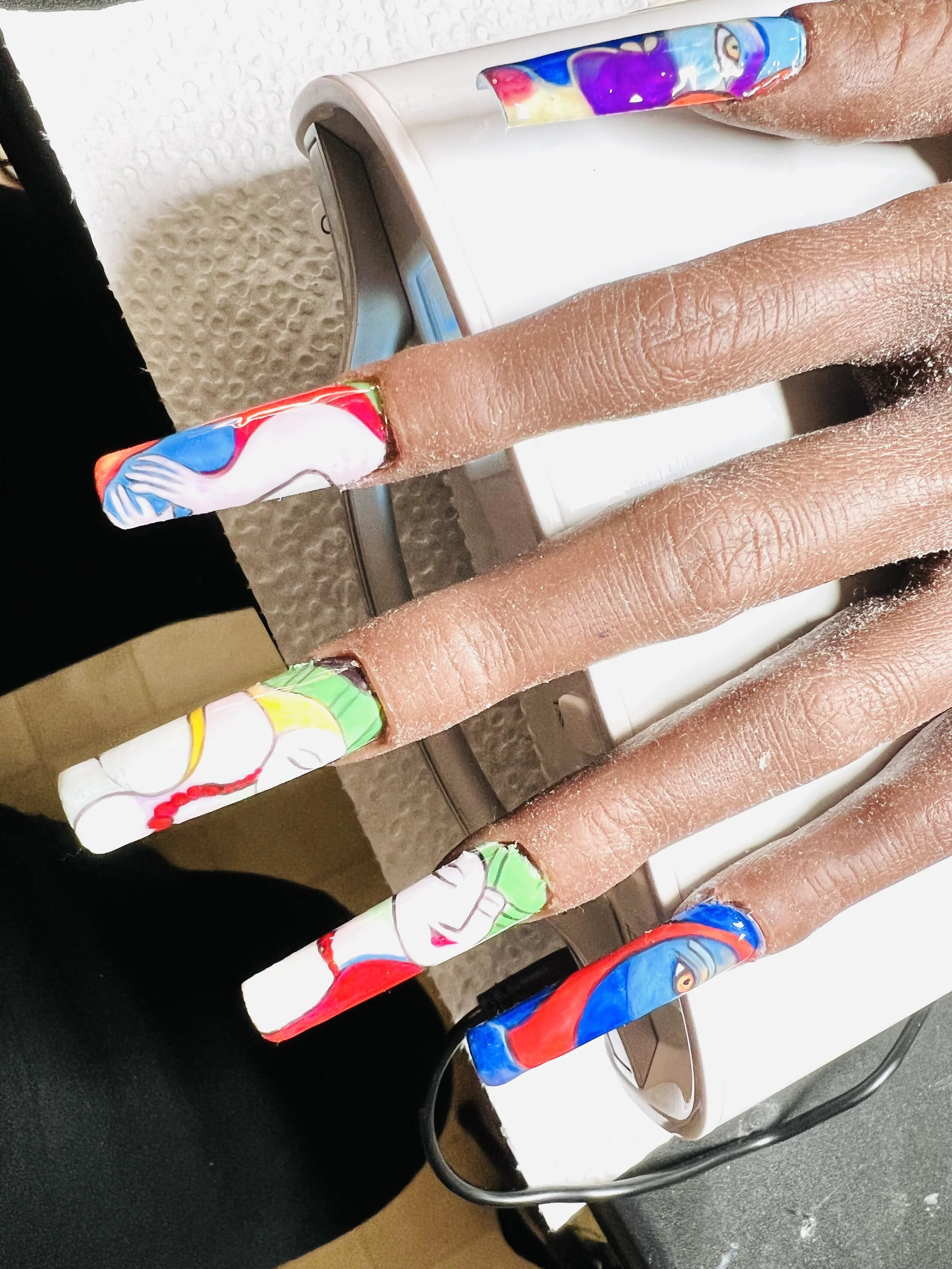 Abstract Nails (extreme mixture of colors, lines and shapes such as cultural designs/prints, etc…)